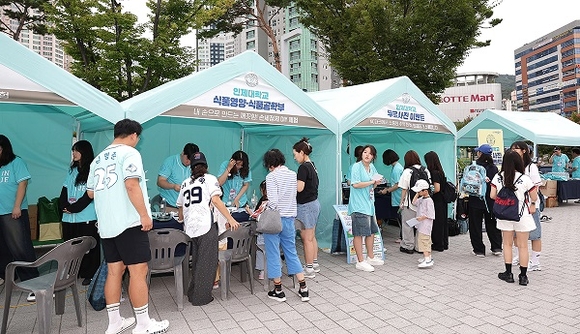 경기장 외부 GATE 1 광장에서는 시민 체험 부스가 운영됐다. NC 다이노스 마스코트 '단디'와 인제대 마스코트 '이니제니' 포토존, 미니게임존을 비롯해 의공학과 심전도 측정 체험, 식품영양·식품공학부 손세정제 만들기 부스가 마련돼 시민들이 인제대 전공 콘텐츠를 직접 경험했다.