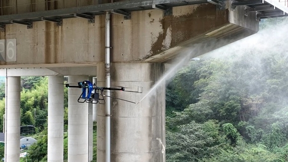 고속도로 구조물의 오염물질 제거를 위해 점검시설을 활용한 인력 세척작업을 정기적으로 진행하고 있는데, 작업여건상 높은 구조물의 경우 접근이 어렵고, 작업자 추락 등의 안전사고 위험이 뒤따르게 된다. 이러한 문제점을 해결하기 위해 자율비행 드론에 AI 기술을 적용한 '구조물 자동세척 드론'을 개발했다. 드론 스스로 비행해 구조물의 오염부를 탐지하고 드론에 장착된 고압노즐을 이용하여 세척까지 완벽하게 마무리한다. 드론 활용으로 인력작업 시 발생할 수 있는 추락 등 위험요인을 제거할 수 있게 되었다. 또한 방음벽, 고층건물 외벽 등 높은 시설물의 세척과 산불 등 화재에 대비하는 사전살수도 가능하다.