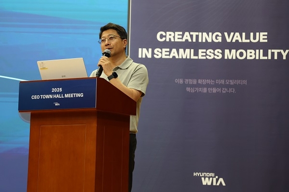 현대위아는 지난 23일 경기도 의왕시 현대위아 의왕연구소에서 ‘2025 CEO 타운홀 미팅’을 개최했다고 24일 밝혔다. 타운홀 미팅은 대표이사가 직접 임직원과 함께 미래 비전과 향후 성장 방향을 나누는 자리다. 이날 타운홀 미팅에는 온·오프라인으로 약 1천 명의 임직원이 참여했다.