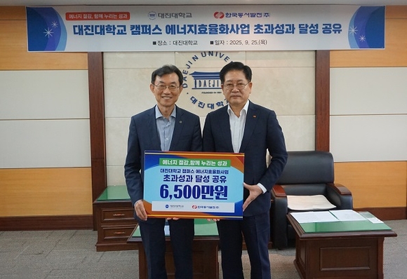 이번 ‘에너지 절감, 함께 누리는 성과, 캠퍼스 에너지효율화 초과성과 달성 공유’ 행사는 대학과 공동의 노력으로 달성한 효율향상 목표 초과성과를 공유하기 위해 마련됐다. 세 대학의 총 누적 절감액은 16억 4천만 원 규모로, 2024년 연말 기준 대진대 17.3%, 동서대 16.7%, 동서울대 12.4%의 효율향상을 달성했다. 이에 따른 성과금 총 1억 6200만 원을 각 대학에 전달했다.