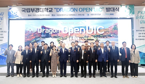 국립부경대 라이즈 사업단은 지난 29일 오후 부경컨벤션홀에서 ‘Dragon Open UIC’ 발대식을 열고, ‘블루(Blue) UIC’와 ‘그린(Green) UIC’ 두 가지 UIC 전략을 선포했다고 30일 밝혔다.