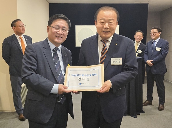 양 회장은 “낙동강 최하류 원수를 식수로 사용하는 부산은 수질 안정성에 대한 시민 불안이 크다”며 “이번 정부가 낙동강 하류 취수원 다변화 사업을 국정과제로 확정한 만큼 강력한 추진력을 발휘해 부산 물 문제를 반드시 해결해 달라”고 요청했다. 이어 “장기적으로는 새로운 대체 수원 확보 방안도 마련해야 한다”고 덧붙였다.