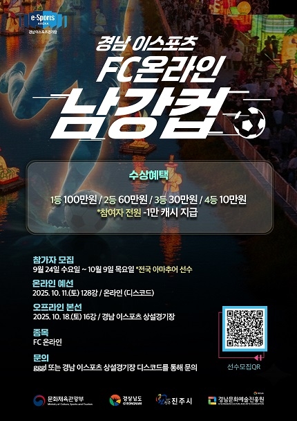 경남도가 주최하고 경남문화예술진흥원이 주관하는 ‘경남 이스포츠 FC온라인 남강컵’이 오는 11일과 18일 2일간 개최된다.