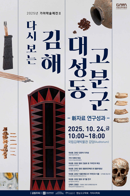 국립김해박물관, 대성동고분박물관, 인제대학교 가야문화연구소, 영남고고학회, 가야사학회 5개 기관단체는 공동으로 2025년 가야학술제전의 두 번째 학술회의를 개최한다. 이번 학술제전의 주제는 ‘다시 보는 김해 대성동 고분군 - 新자료 연구성과 - ’로 오는 24일 김해박물관 강당에서 열린다.