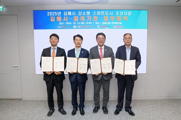 이번 협약은 김해시가 지난 6월 국토교통부 '2025년 강소형 스마트도시 조성사업' 선정에 따라 2027년까지 3년간 총 165억 원(국비 80억, 도비 16억, 시비 64억, 민간 5억)을 투입해 추진하는 사업의 성공적 수행과 상호협력 체계 마련을 위해 마련됐다.