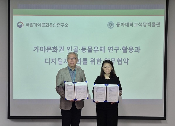 동아대 석당박물관은 국립가야문화유산연구소와 ‘가야문화권 인골·동물유체 연구·활용 및 디지털 자원화’를 위한 업무협약을 체결했다고 20일 밝혔다.