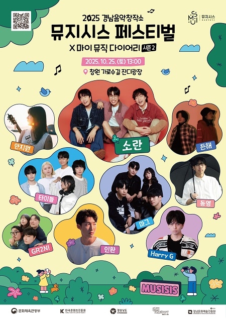 경남도와 경남문화예술진흥원은 오는 25일 오후 1시 창원 가로수길 잔디광장에서 ‘2025 경남음악창작소 뮤지시스 페스티벌-마이 뮤직 다이어리 시즌2’ 행사를 개최한다고 20일 밝혔다.
