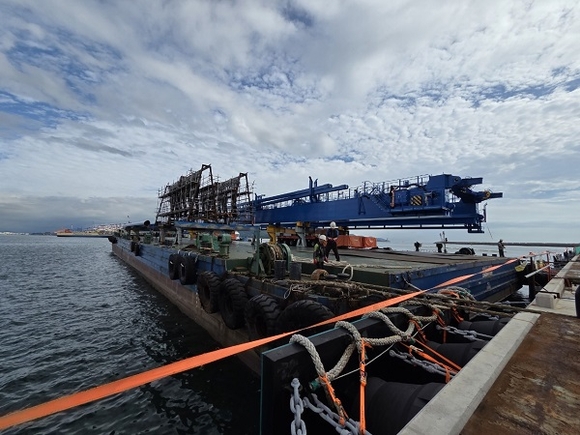 장비 운송은 컨테이너크레인(Container Crane(C/C)) 1대를 3부분(상부, 하부, 하역부)으로 나눠 바지선을 통해 진행된다. 지난 15일 1항차 하역부 운송을 시작으로 2026년 6월까지 6대의 크레인을 18항차에 나눠 운송하며, 1항차당 약 9시간이 소요된다.
