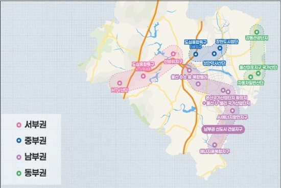 한편 울산경제자유구역은 최근 KTX울산역 복합특화지구가 추가 지정되면서 현재 ▲수소산업거점지구(테크노산단) ▲일렉드로겐오토밸리(이화일반산단) ▲연구개발 사업 지구(R&D 비즈니스 밸리)(UNIST·KTX역세권·HTV 일원) ▲KTX울산역 복합특화지구 등 총 4개 지구(6.28㎢)를 운영 중이다.