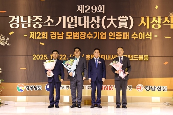 '경남중소기업대상'은 기술·경영 혁신으로 신제품 개발, 고용·수출 확대, 노사 동반 성장 등 지역경제 발전에 기여한 중소기업과 장기 재직자의 노고를 격려하기 위해 1996년부터 매년 수여해오고 있다.