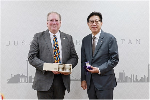 부산시가 지난 29일 시청에서 영국의 대표적 금융 싱크탱크 ‘지옌(Z/Yen)’의 마이클 마이넬리 회장을 만나 양국 간 경제·금융 협력 방안과 발전 방향을 논의했다고 밝혔다.