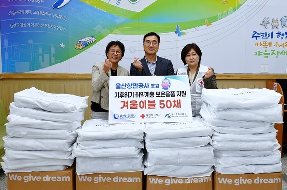 울산항만공사(UPA)와 대한적십자사 울산지사는 30일 야음장생포동 행정복지센터를 방문해 이불 50채를 전달했다고 밝혔다.
