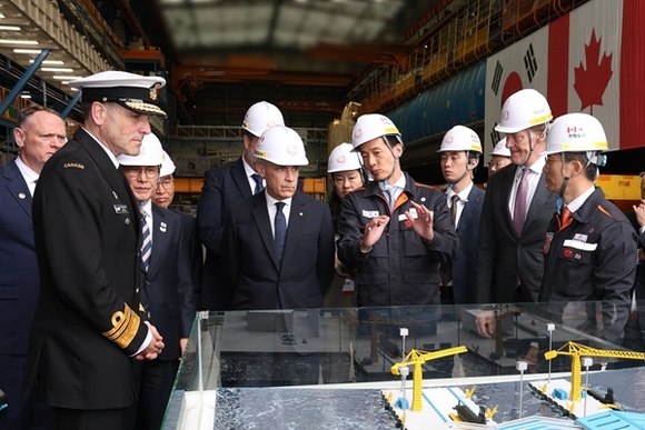 숏리스트 발표 당시 독일을 방문했던 카니 총리는 “올 가을에는 한국 조선소도 직접 방문할 것”이라며 공정한 경쟁을 통해 최적의 우선협상대상자를 선정하겠다는 의지를 보인 바 있다. 아시아태평양경제협력체(APEC) 정상회의 참석을 위해 방한한 카니 총리는 독일에서 공표한 대로, 바쁜 일정 속에서도 시간을 쪼개 CPSP 최종 후보인 한화오션의 거제사업장을 방문했다.