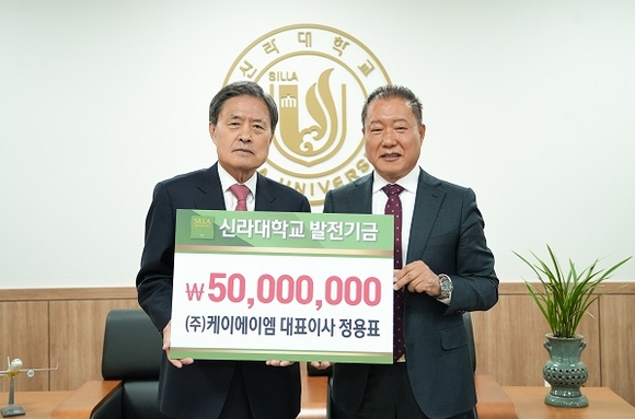 정용표 케이에이엠 대표이사는 “신라대 최고경영자과정을 통해 기업인으로서 많은 도움을 받았다”며 “신라대, 그리고 학생들의 성장이 곧 지역사회, 지역 기업의 발전에 큰 기여를 할 것이라 기대하며, 작은 보탬이 되고자 한다”고 전했다.