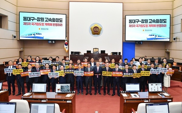 경남도의회는 4일 본회의 종료 직후 본회의장에서 '동대구~창원 고속화철도 제5차 국가철도망 계획 반영 촉구 성명서'를 발표하며, 국가 균형발전의 실질적 이행을 위해 정부가 제5차 국가철도망 계획에 동대구~창원 고속화철도를 반드시 반영할 것을 강력히 촉구했다.