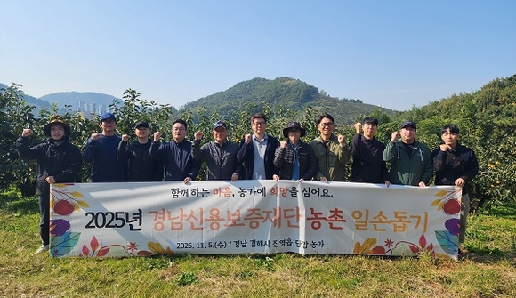 경남신용보증재단은 5일 경남 김해시 진영읍 소재 단감농가를 찾아 2025년 가을철 농촌일손돕기 봉사활동을 실시했다고 밝혔다. 이날 봉사활동에는 이효근 이사장을 비롯한 13명의 직원이 수확철 일손이 부족한 농가를 돕는 데 구슬땀을 흘렸다.