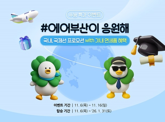 에어부산 관계자는 “수능을 준비하며 오랜 기간 고생한 수험생을 격려하고 새출발을 응원하기 위해 대규모 프로모션을 준비했다”라며 “앞으로도 고객들의 뜻깊은 여정에 함께하는 동반자로서 의미 있는 역할을 다할 수 있도록 노력하겠다”고 전했다.
