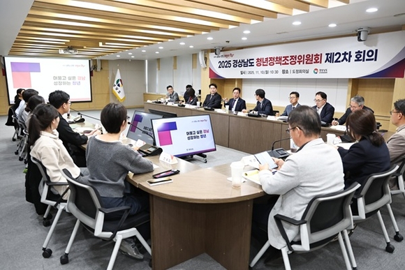 경남도는 10일 오전 도청 도정회의실에서 '2025년 제2차 경상남도 청년정책조정위원회'를 열고 올해 청년정책 추진 성과를 점검하고 내년도 정책 방향을 논의했다.