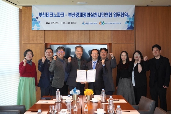부산테크노파크(부산TP)가 14일 부산경제정의실천시민연합과 ‘부산 전략산업 선도기업 ESG 경영 지원 및 지역사회 협력 강화’를 위한 업무 협약을 체결했다.