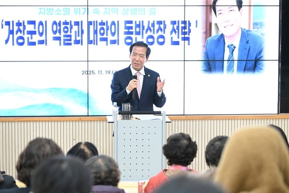 특히 특강에서는 지역 인재 양성의 근간인 거창대학이 대학통합에 따른 환경 변화에 유연하게 대응하고 대학 특성화 전략을 잘 수립해 앞으로 지역과 대학이 함께 성장할 수 있는 입지 기반을 강화해 나가야 한다고 강조했다.