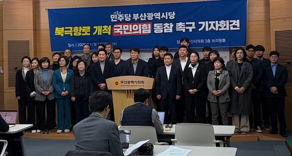 더불어민주당 부산시당이 24일 부산시의회에서 기자회견을 열고 북극항로 전략을 둘러싼 국민의힘의 공세를 강하게 비판했다. 민주당 부산시당은 “북극항로 개척은 대한민국의 미래 비전이자 부산의 국제적 도약 기회”라며 “이를 정쟁의 장으로 끌고 들어가는 국민의힘의 행태에 깊은 우려와 유감을 표한다”고 밝혔다.