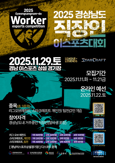 경남도와 경남문화예술진흥원은 ‘2025 경남 직장인 이스포츠 대회’ 본선이 오는 29일 개최된다고 28일 밝혔다.