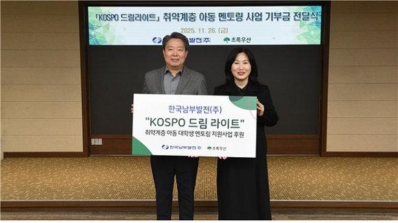 한국남부발전이 지역아동센터 아동의 학습격차 해소와 대학생 멘토의 진로역량 개발을 위한 ‘KOSPO 드림 라이트 멘토링 지원사업’ 기부금을 초록우산어린이재단 부산지역본부에 전달했다고 28일 밝혔다.