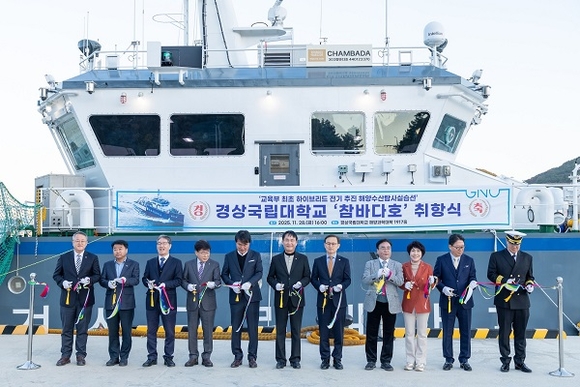 경상국립대학교 해양과학대학은 지난달 28일 통영캠퍼스 1917홀 및 실습선 부두에서 새로운 해양조사선 ‘참바다호’ 취항식을 개최했다고 1일 밝혔다.