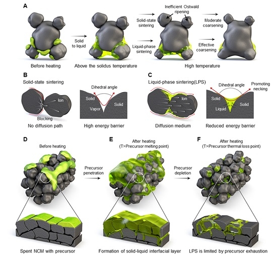 하지만 폐배터리 소재를 고열이나 강산으로 녹여서 재활용하는 기존 방법(Downcycling)은 높은 비용과 환경문제로 상업화에 한계가 있었다. 이를 개선하기 위해 다이렉트 리사이클링 방법에 대한 연구가 최근 진행되고 있는데, 지금까지는 2~4마이크론 크기의 소재만 합성이 가능한 것으로 보고됐다.