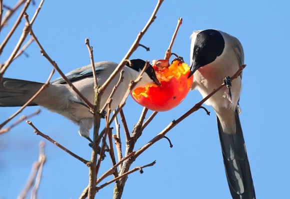 [포토] 홍시 쪼아 먹는 물까치