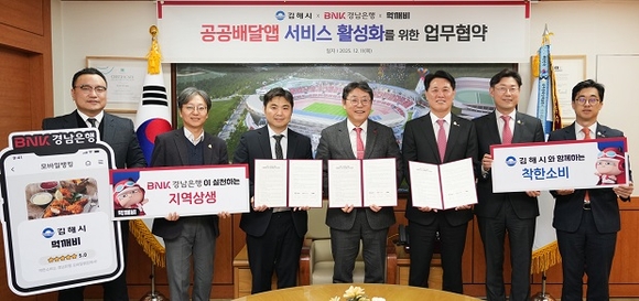 김태한 경남은행장은 “이번 업무 협약이 지역 소상공인의 수수료 부담을 낮추고 김해 시민들의 외식비 절감에도 도움이 될 것으로 기대한다. 경남은행 모바일뱅킹을 통해 소상공인과 시민들이 공공배달앱을 더욱 편리하게 이용하길 바라며 앞으로도 김해시 그리고 먹깨비와 함께 지역 상생에 앞장서겠다”고 전했다.
