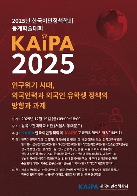부산외국어대학교 이주다문화연구소는 오는 19일 삼육보건대학교에서 한국이민정책학회, 고등직업해외인재유치협의회(KARIS)와 공동으로 '2025년 한국이민정책학회 동계학술대회'를 개최한다고 18일 밝혔다.