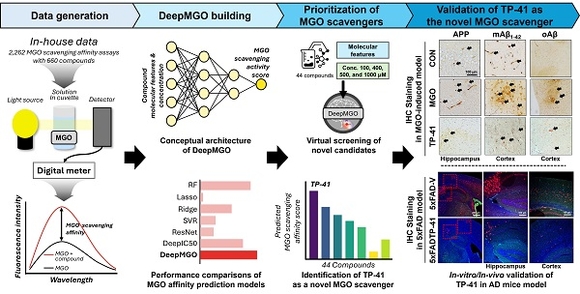 해당 모델을 활용한 AI 스크리닝으로 연구팀은 기존 트립토판 계열 물질보다 혈뇌장벽(BBB) 투과율이 우수한 신규 유도체 ‘TP-41’을 발굴하는 데 성공했다. TP-41은 MGO를 직접 소거하는 기전을 통해 독성을 낮추고, 뇌로의 전달 효율을 높인 것이 특징이다.