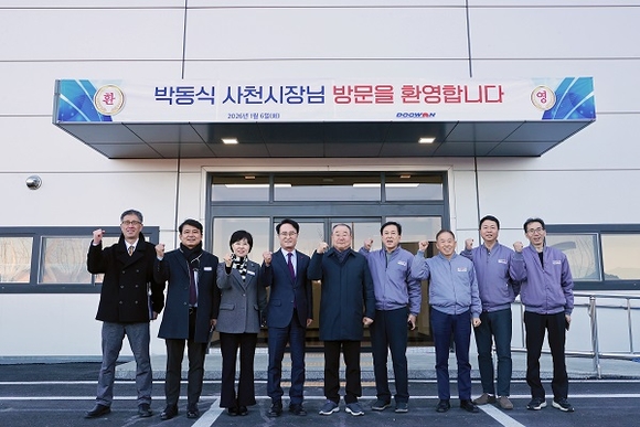 박동식 시장은 지난 6일 사천 우주항공국가산업단지 1호 입주기업인 ㈜두원중공업을 찾아 기업 운영 현황을 점검하고, 현장의 애로사항을 청취했다.