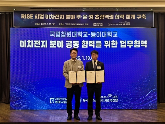 국립창원대학교는 동아대학교와 RISE사업 이차전지 분야 부·울·경 광역권 협력체계 구축 성과교류회를 개최했다고 26일 밝혔다.