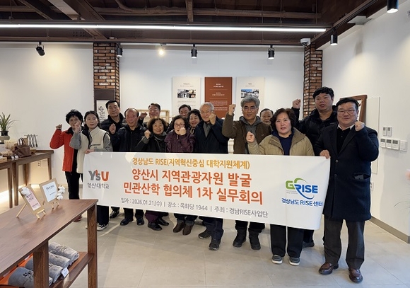 영산대 드론공간정보공학과 김성보 교수(사업책임자)는 지난 21일 양산시 근대문화유산인 ‘목화당 1944’에서 ‘양산시 지역관광자원 발굴 민관산학 협의체 2026년 1차 실무회의’를 개최하고 양산읍성 일대를 중심으로 한 관광 콘텐츠 개발 방안을 논의했다.