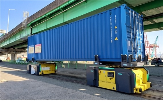 ‘환적화물 셔틀시스템’은 부산항 내 터미널 간 발생하는 타부두 환적화물을 2대의 셔틀을 이용해 컨테이너를 무인자동방식으로 이송하는 궤도형 전기구동 이송장비 기술로 BPA와 ㈜시스콘로보틱스가 함께 공동 개발했다.