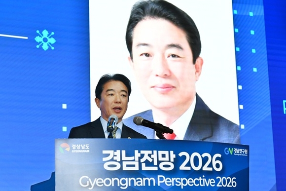 경남도의회 최학범 의장이 지난 9일 창원컨벤션센터(CECO)에서 열린 국제 컨퍼런스 '경남 전망 2026'에 참석해 경남의 중장기 발전 방향과 도의회의 역할을 강조했다.