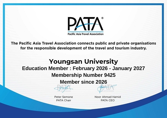 이번 가입으로 영산대는 전 세계 관광 리더들과의 접점을 확보하게 됐다. 올해로 창립 75주년을 맞이하는 PATA는 전 세계 정부 기관, 항공사, 관광 기업 및 교육 기관이 참여하는 글로벌 권위의 국제기구다. 현재 국내에서는 영산대와 경희대가 가입해 활동 중이며, 홍콩과기대, 호주 그리피스대, 마카오관광대, 일본 와카야마대 등 QS 세계대학평가 관광분야 최상위권 대학 대부분이 회원으로 활동하고 있다.