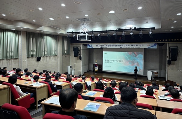 이러한 현장 중심의 복지를 실현하고자 도교육청은 지난 23일 교육연수원에서 사업 운영 학교 관리자(교장·교감)를 대상으로 역량 강화 연수를 가졌다. 이번 연수는 학교 복지 정책을 이끄는 관리자의 역할을 강화하기 위해 마련했으며, 참석자들은 정책의 가치를 공유하고 실질적인 운영 방안을 함께 모색했다.