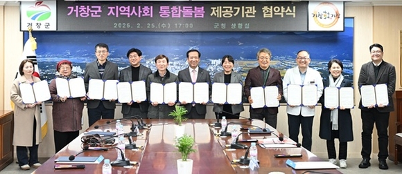 경남 거창군은 지난 25일 군청 상황실에서 지역사회 통합돌봄 제공기관과 함께 통합돌봄 서비스 제공을 위한 업무협약(MOU)을 체결했다.