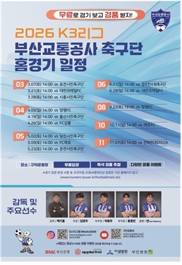 부산교통공사 축구단이 오는 7일 오후 2시 부산 서구 구덕운동장에서 포천시민축구단을 상대로 2026 K3리그 홈 개막전을 치른다.