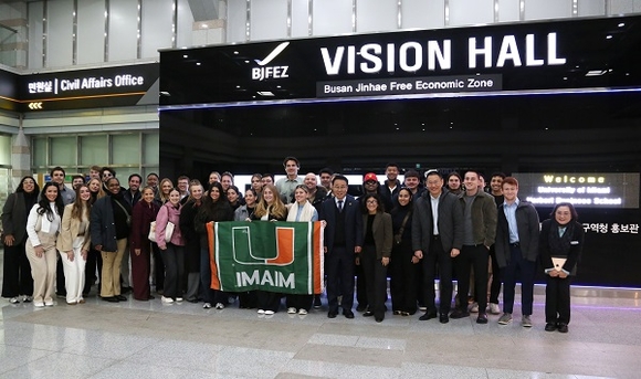 부산진해경제자유구역청은 9일 미국 마이애미대학교 허버트 경영대학원(University of Miami Herbert Business School)의 교수진과 석사 과정생 등이 50여 명이 경자청을 방문했다고 밝혔다.