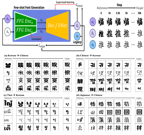 기존 AI 기반 자동 폰트 생성 기술도 이런 부담을 줄여왔지만, 실제 품질을 유지하려면 전체 글자의 5~10%는 여전히 사람이 직접 만들어야 했다. 논문에서는 이를 기준으로 한글 약 1100자, 중국어 약 6000자를 수작업으로 제작해야 하는 수준으로 설명한다.