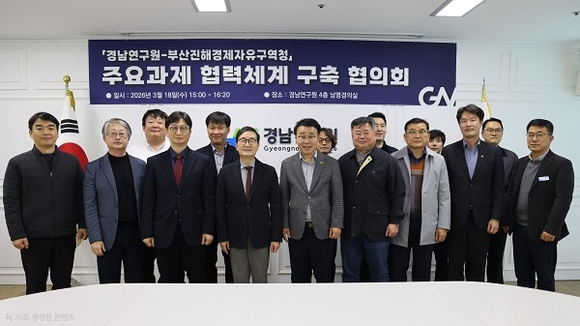 부산진해경제자유구역청이 지난 18일 경남연구원에서 'BJFEZ-경남연구원 주요과제 협력체계 구축 협의회'를 개최하고, 경남권 개발 전략과 연계한 주요 정책과제 협력 방안을 논의했다고 밝혔다.