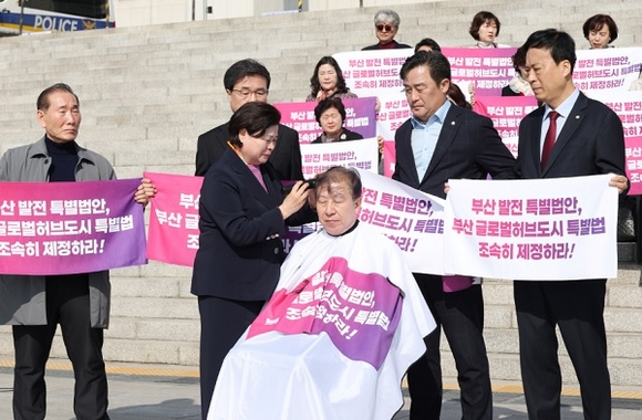 특히 박 시장은 기자회견 도중 시민단체 관계자의 도움을 받아 삭발을 했다. 그는 “아무리 합리적인 사안이라도 정쟁의 벽에 가로막히면 앞으로 나아가기 어렵다는 점을 절감했다”며 “부산 시민의 미래를 위해 결연한 마음으로 나섰다”고 말했다.