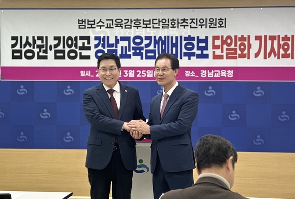 김영곤, 김상권 경남도교육감 예비후보가 보수·중도 진영 단일화에 전격 합의했다.