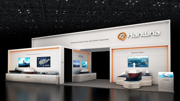 한화오션과 통합부스를 꾸민 한화시스템은 이번 전시에서 무인체계와 실시간 협업하는 지능형 해상 지휘 거점 ‘스마트 배틀십’ 솔루션을 소개한다. 첨단 스텔스 설계와 AI 기반 지능형 전투체계, 콕핏(Cockpit)형 통합함교체계(IBS·Integrated Bridge System)를 적용해 미래 전장의 복잡성에 능동적으로 대응할 수 있는 최적의 지휘 통제 환경을 제공한다.