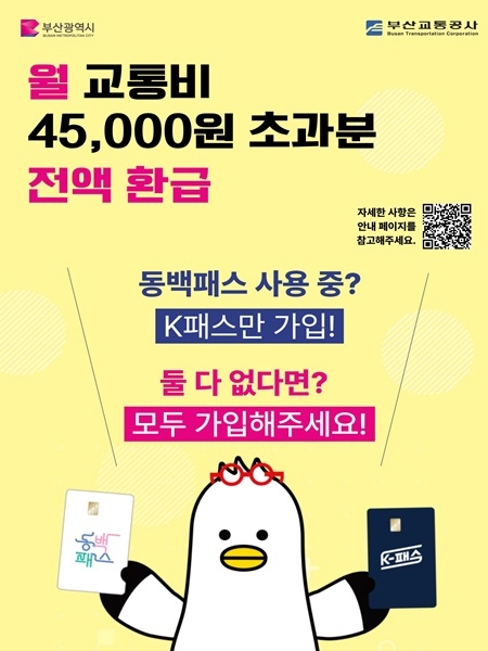 부산시는 1일부터 정부의 K-패스(모두의카드)와 동백패스 간의 연계 방식을 개선해 월 4만 5천 원으로 부산의 대중교통을 무제한 이용할 수 있다고 밝혔다.