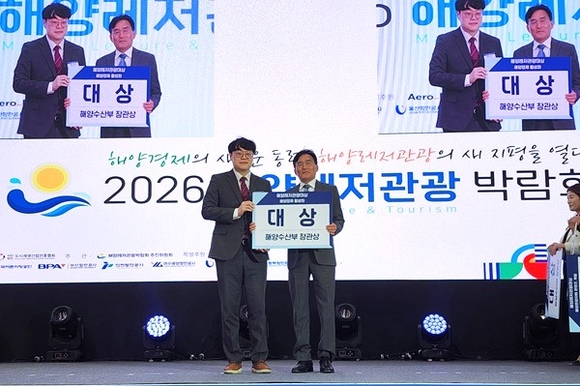 경남도는 2일 해양수산부 주최로 인천 송도컨벤시아에서 열린 '2026 해양레저관광 박람회' 개막식에서 해양경제 활성화 분야 '대상'을 수상했다고 밝혔다.